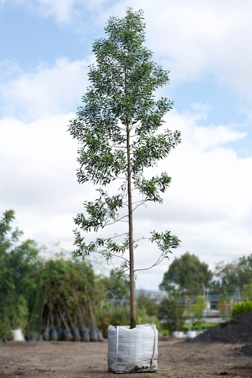 | Tipo de hoja | De hoja perenne. Las hojas son filodios persistentes alternos y laceolados, de unos 5-13cm de longitud de un color verde oscuro. Este árbol presenta diformismo foliar, es decir cuando son pequeñas tienen un tipo de hojas diferente a cuando son adultos. |